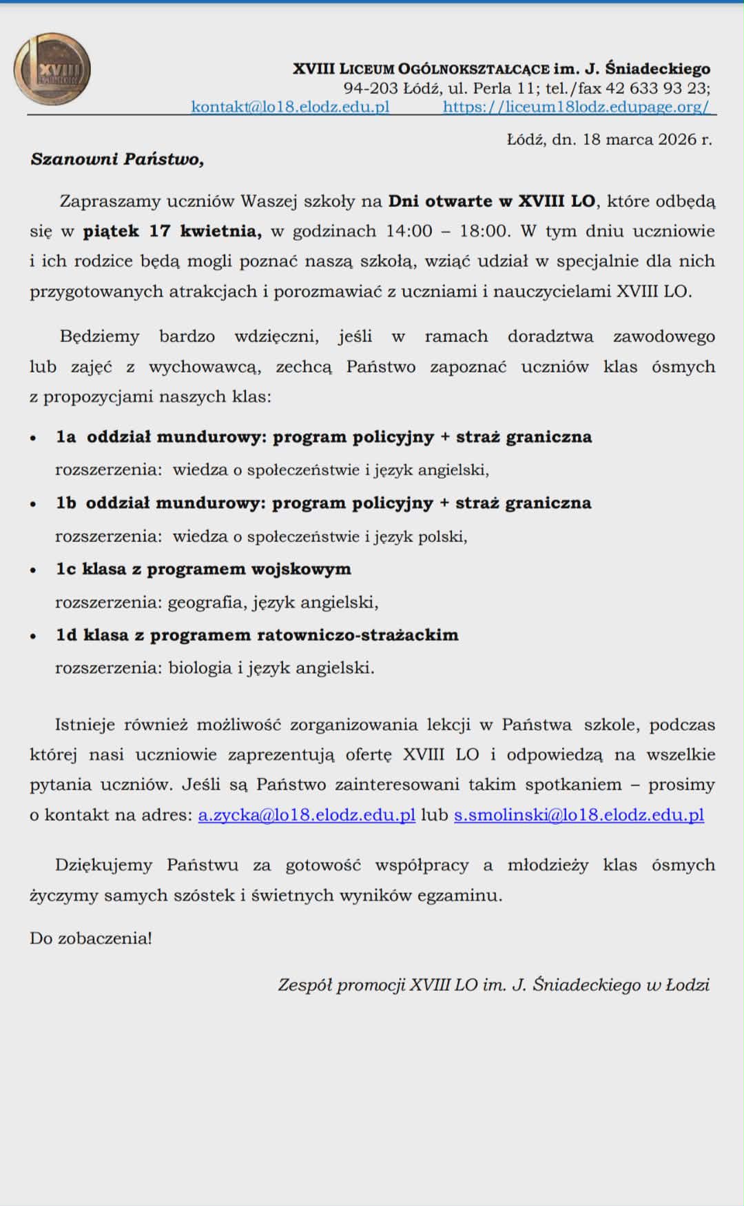Drzwi Otwarte w XVIII LO